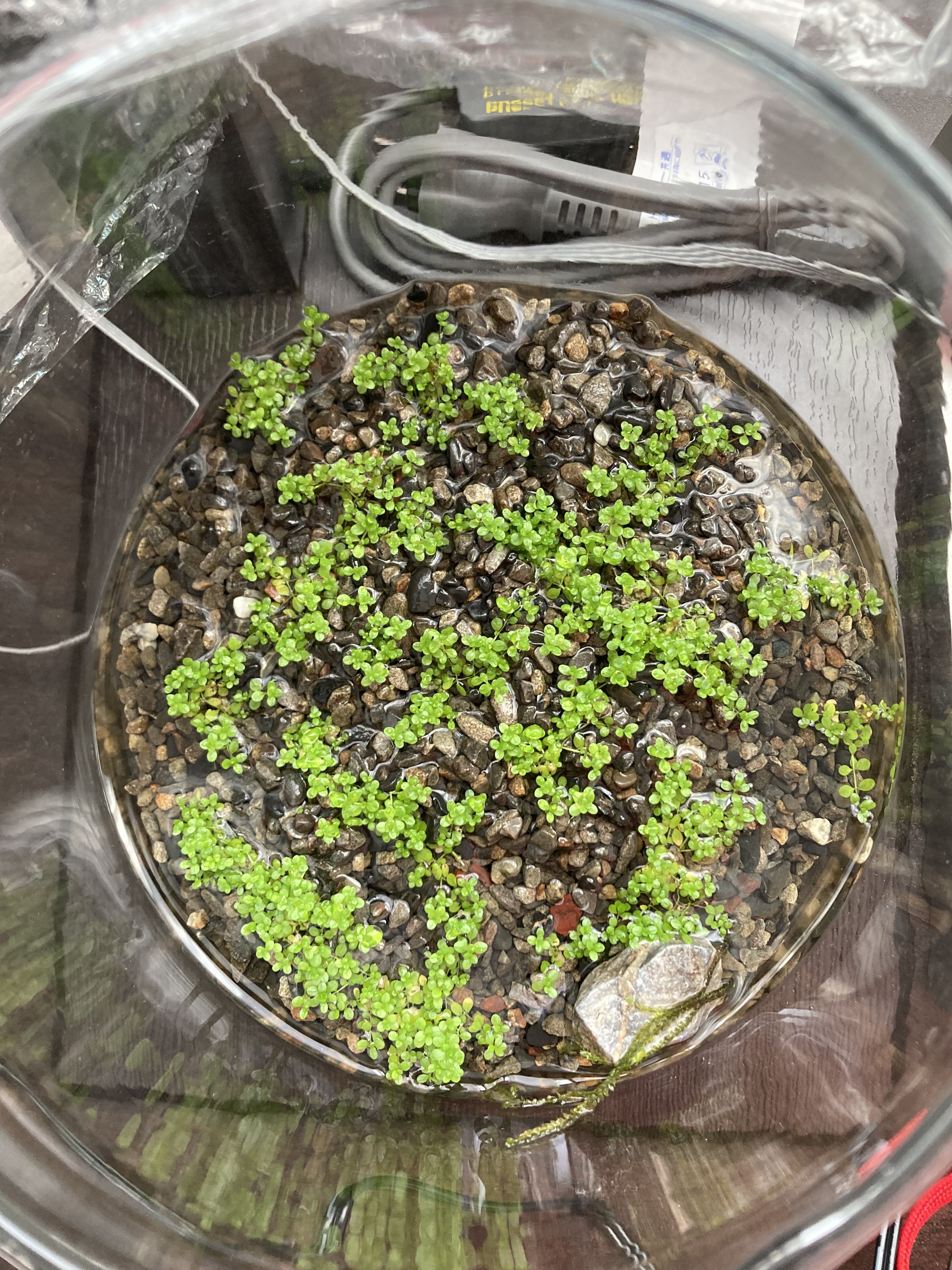キューバパールグラスを買って、余っていた大磯砂で育てた記録。調べてみたら「ミスト式」という方法が良さそうだったので、どこまで育てられるか試してみた。
